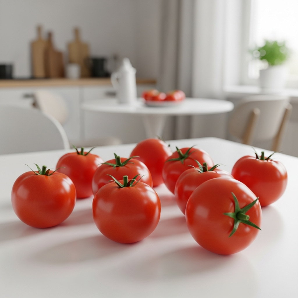 食卓に並ぶ真っ赤なトマト。